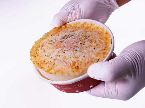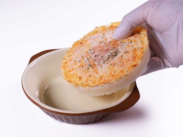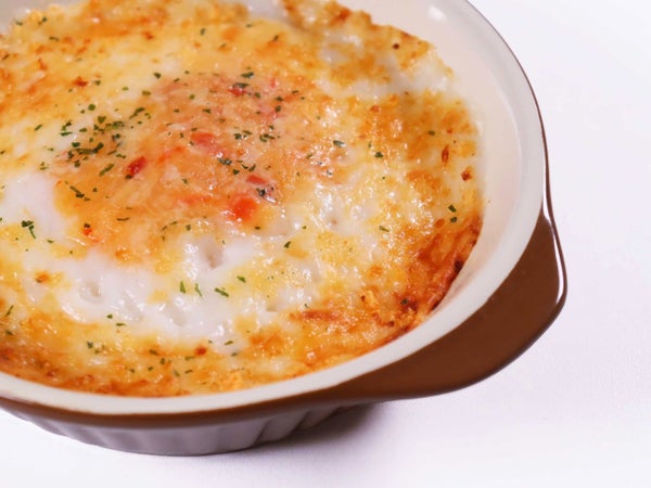 耐熱容器に移してレンジ加熱すれば、お店で焼き上げたような見た目になります。