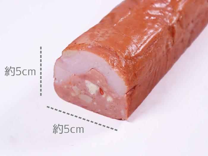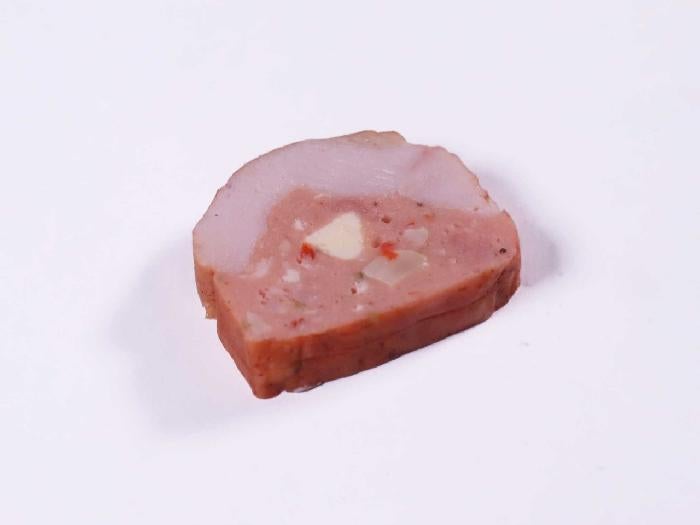 鶏肉(国産)、豚肉(カナダ産)、ピーマン(赤、緑)、カシューナッツ、豚脂、プロセスチーズ、食塩、砂糖、香味調味料、香辛料/ソルビット、加工デンプン、調味料(アミノ酸等)、カゼインNa、リン酸塩(Na、K)、乳化剤、着色料(紅麹、キビ色素、アナトー)、セルロース、発色剤(亜硝酸Na)、香料、香辛料抽出物、安定剤(増粘多糖類)、くん液、(一部に小麦、乳成分、大豆、豚肉、鶏肉、カシューナッツを含む)
