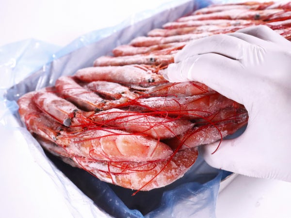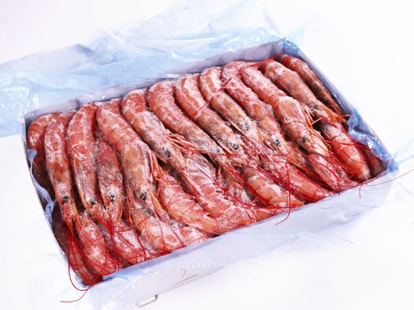 生の状態で赤く、大きくて見栄えが良いことで人気のアルゼンチン赤海老です。身質もまろやかで甘みもあります。