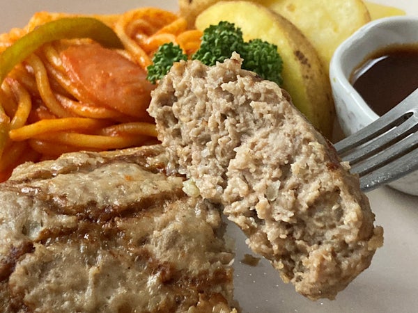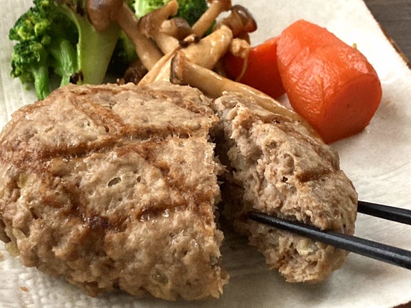 きめの細かい肉質が食べやすい、網目模様付きのハンバーグ