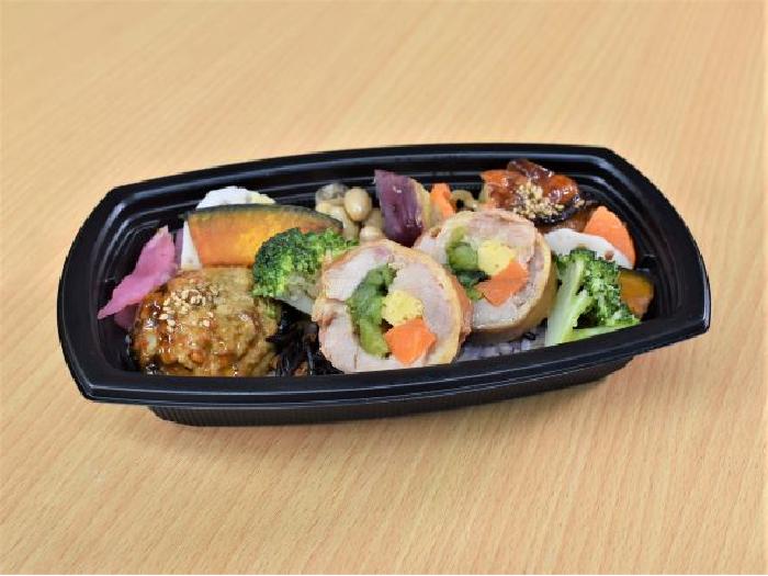 鶏肉(ブラジル産)、菜の花、人参、玉子焼(鶏卵、砂糖、澱粉、その他)、砂糖、しょうゆ、砂糖混合ぶどう糖果糖液糖、香味調味料、粉末しょうゆ、食塩、香辛料/調味料(アミノ酸等)、カゼインNa、ソルビット、リン酸塩(Na)、糊料(加工デンプン、タマリンド)、着色料(紅麹、カラメル)、トレハロース、pH調整剤、酒精、香料、(一部に乳成分・卵・小麦・大豆・鶏肉・豚肉を含む)