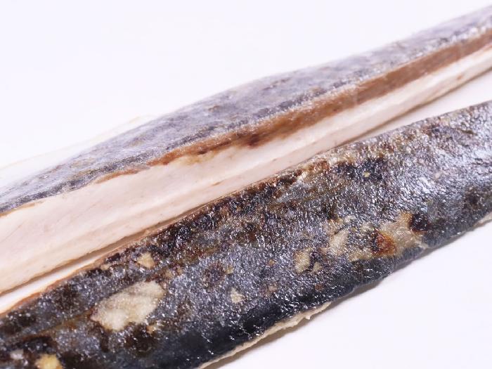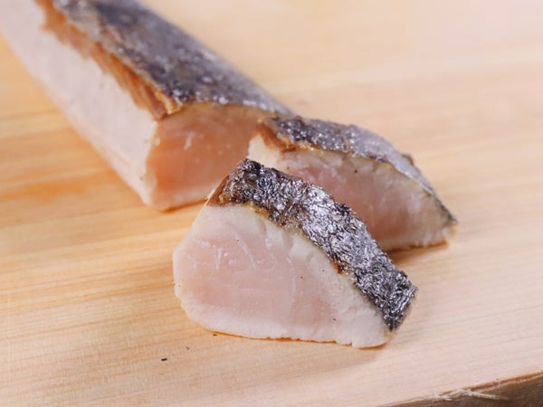 寒い時期~春先に、一番旨みが強くなる寒さわらを刺身用に加工後炙り(タタキ加工)を入れた、焼霜造りのさわらです。背腹各1本ずつ使いやすく真空パックにしました。