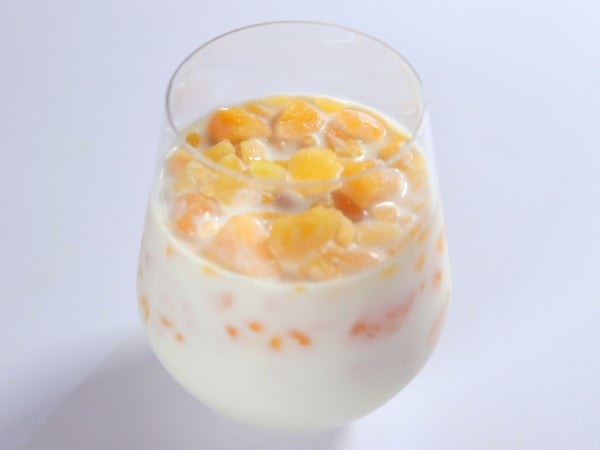 冷凍のまま、容器に入れ、牛乳150ml程度を注いでください。