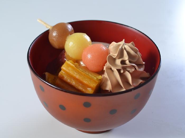 橙・黄・茶の秋の彩りを添える、米粉で作った小さくてかわいい団子串です。