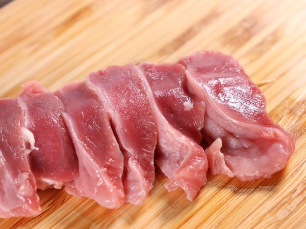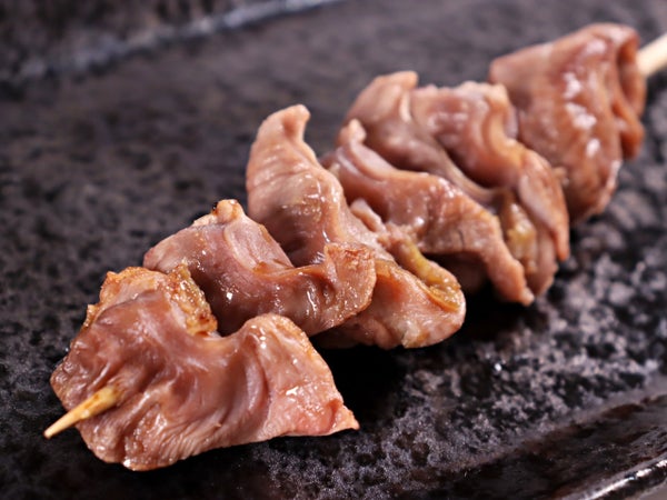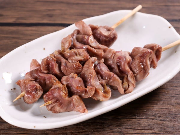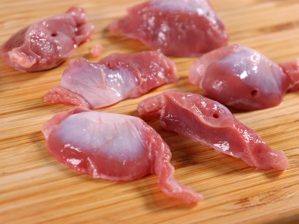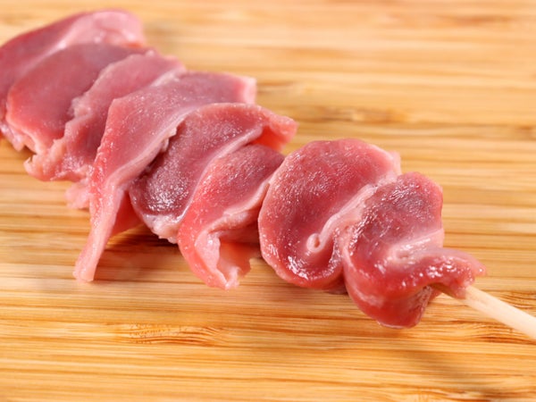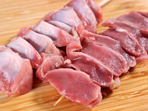 国産の砂肝を15cm丸串で打ちました。国内工場で加工しています。