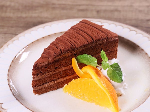 しっとりとした、くちどけのよさが特徴的なチョコケーキ。カカオと洋酒が香る、ちょっと大人向けのニュアンスです。