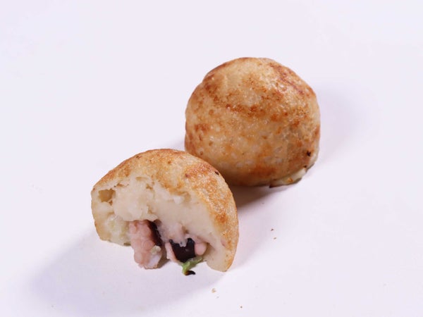 見た目に大きく、たこが二粒入っているのが特徴です。