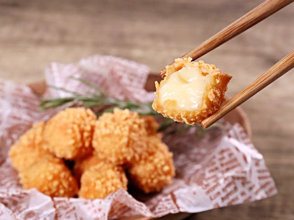 プロセスチーズ(国内製造)、衣(じゃがいも、でん粉、パン粉、小麦粉、食塩、砂糖、ぶどう糖、こしょう末)、揚げ油(なたね油、パーム油)/乳化剤、セルロース、増粘剤(増粘多糖類、加工デンプン)、調味料(アミノ酸)、(一部に小麦・乳成分・大豆を含む)