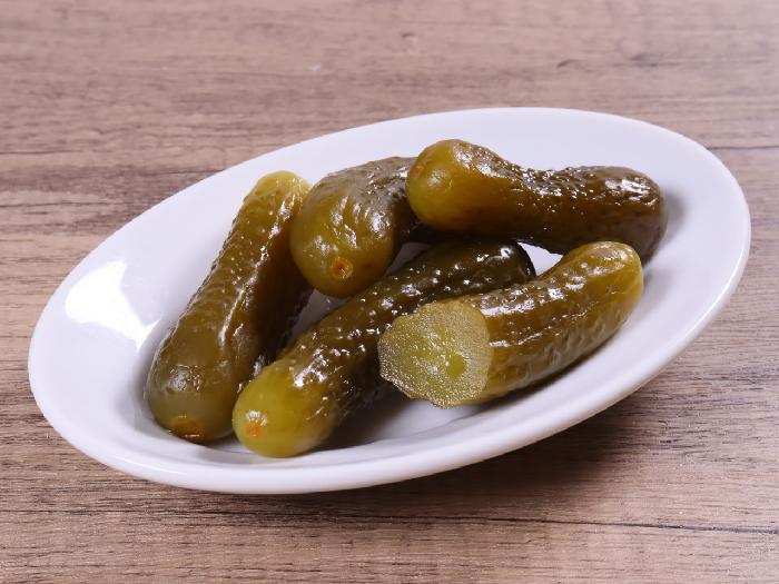 きゅうり、漬け原材料(砂糖・醸造酢・食塩)、香辛料、ウコン色素、乳酸Ca、リン酸塩(Na)