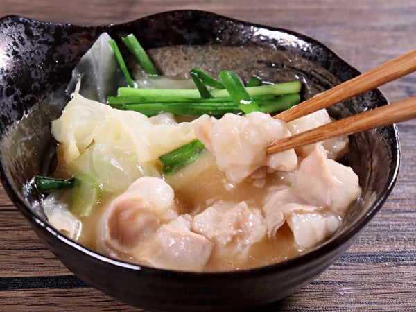味噌のコクと香り、にんにくの風味がしっかりあって、少しピリ辛感のあるもつ鍋が楽しめます。