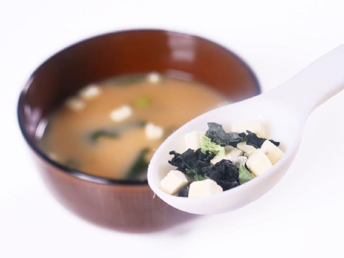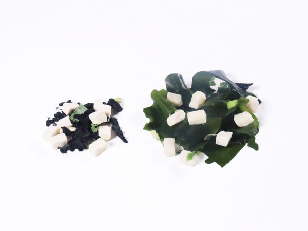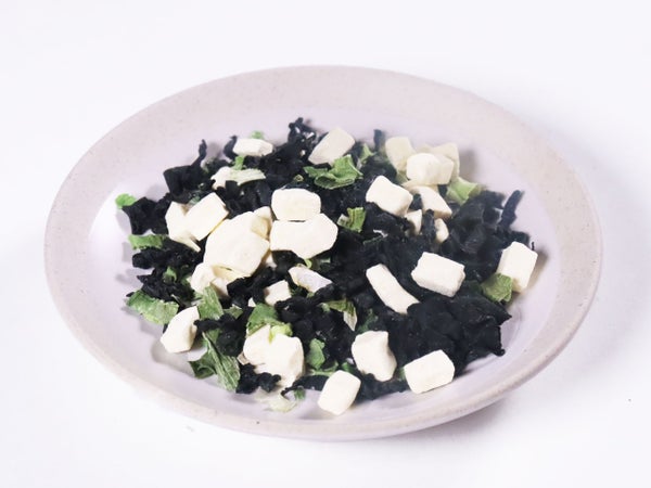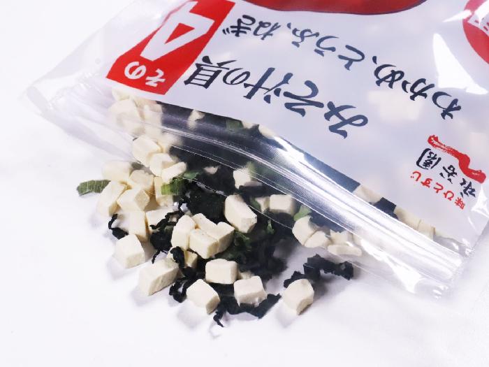 わかめ・とうふ・ねぎがミックスされた乾燥したみそ汁用の具です。