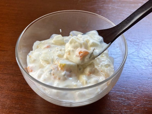 写真のようにゆで卵を刻んで加えたり、「いぶりがっこタルタル」や「柴漬けタルタル」などのベースとしても便利。