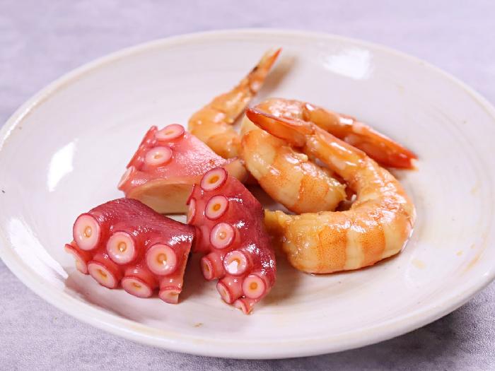 【たこ・えび】魚介類はおおむね合うようですが、しょっぱくなりがちなので付け時間は短いほうがいいようです。