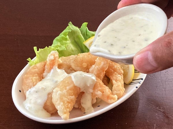 フリッターの衣によく染みて、エビマヨのように楽しめます。