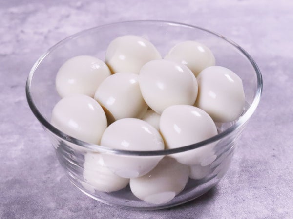 定数60個入りの水煮殻剥きのうずら卵。