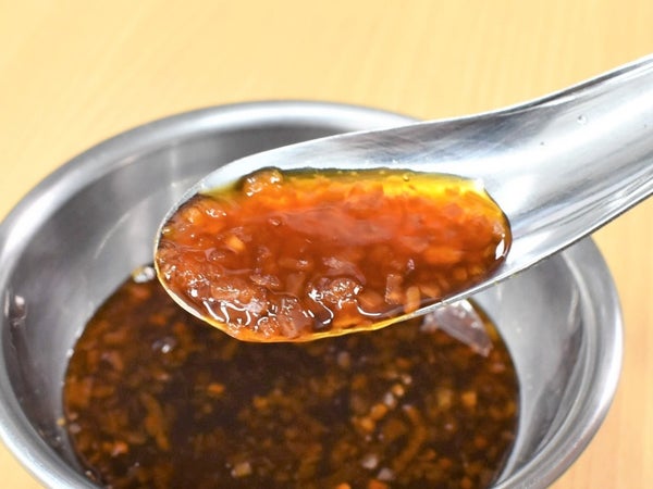 醤油をベースに3種の具材(玉ねぎ・生姜・長ねぎ)と3種の果汁(パイン・レモン・みかん)を加えた、具材入りのたれです。