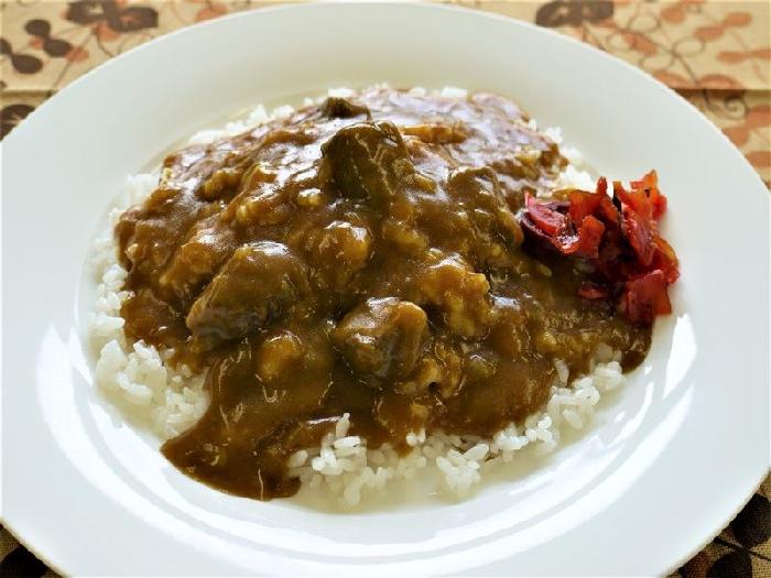 ソテー・ド・オニオンとリンゴの甘みに唐辛子の辛さが効いたビーフカレーです。