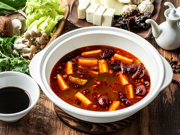 唐辛子のピリッとした辛さと花椒のしびれるような辛さが広がる四川風鍋の素です。辛味と香り、赤い色が食欲をそそります。また、流行りの麻辣湯のベーススープにもなります。