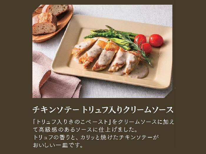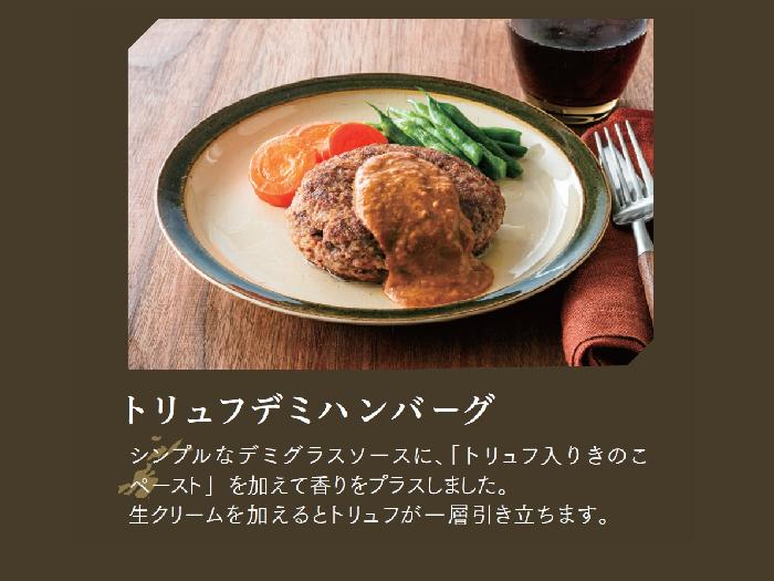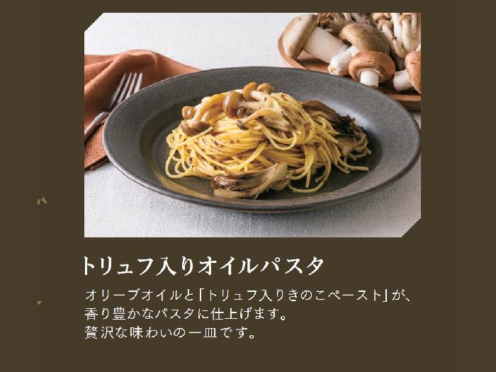 ホワイトマッシュルームをベースにトリュフを加えた使い勝手の良いチューブタイプのペーストです。ソースやパスタなど様々なメニューが、混ぜるだけで簡単にトリュフの香り立つ高級感のあるメニューとなります。
