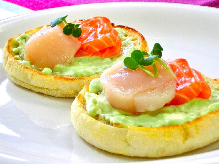 ピスタチオクリームチーズのオープンイングリッシュマフィン