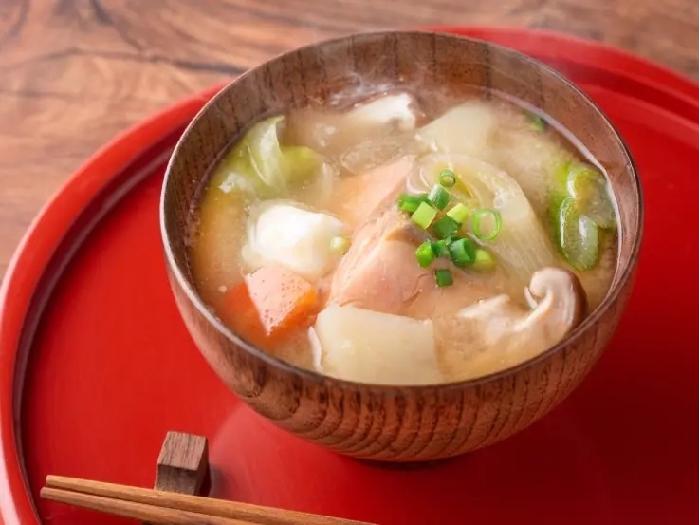 米みそ(国内製造)、食塩、かつお節粉末、たん白加水分解物、かつおエキス、宗田かつお節粉末、昆布エキス/酒精、調味料(アミノ酸等)、(一部に大豆を含む)