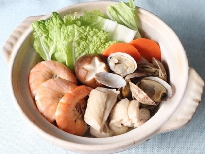 食塩(国内製造又はメキシコ製造(5%未満)又はオーストラリア製造(5%未満))、しょうゆ(小麦・大豆を含む)、貝エキス(あさり、ホタテ)、ホタテエキス、ガラスープ(鶏肉・豚肉を含む)、ハマグリエキス、砂糖、たまねぎペースト、しじみ調味液、食用植物油脂(大豆を含む)、干しホタテ貝柱(粗挽き)、昆布、かつお節、香辛料/調味料(アミノ酸等)、アルコール、増粘剤(キサンタン)