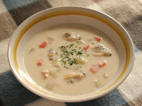 洋ならクラムチャウダーに。貝のうまみが補強されます。