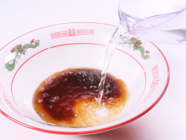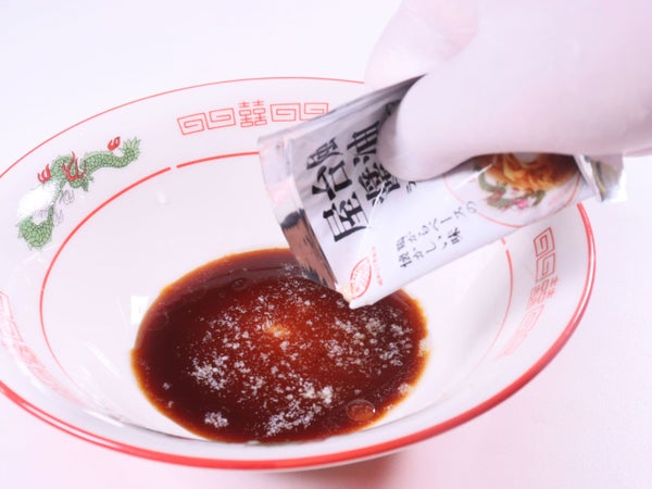 どんぶりに小袋を全量絞り出してください。
