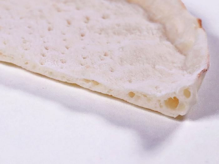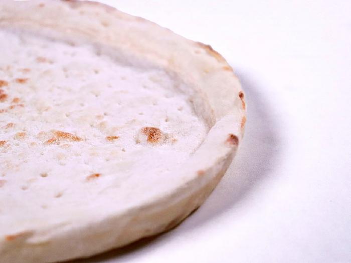 高温短時間で焼き上げたモチッとした食感のナポリピザ生地です。手のばしならではのいびつな耳の形が自然です。