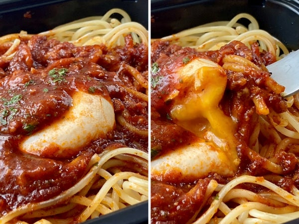 解凍後や加熱後は卵黄ソースがとろ~り流れます。