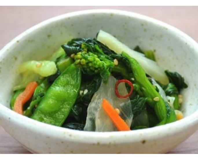 菜の花・キャベツ・竹の子・きぬさやなどの春野菜を、浅漬け風の和え物にしました。