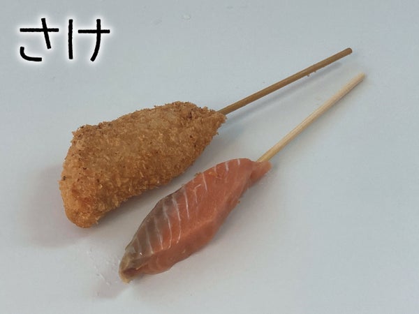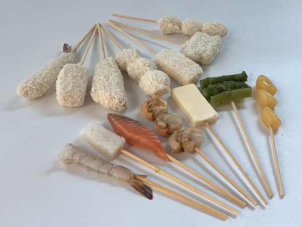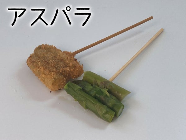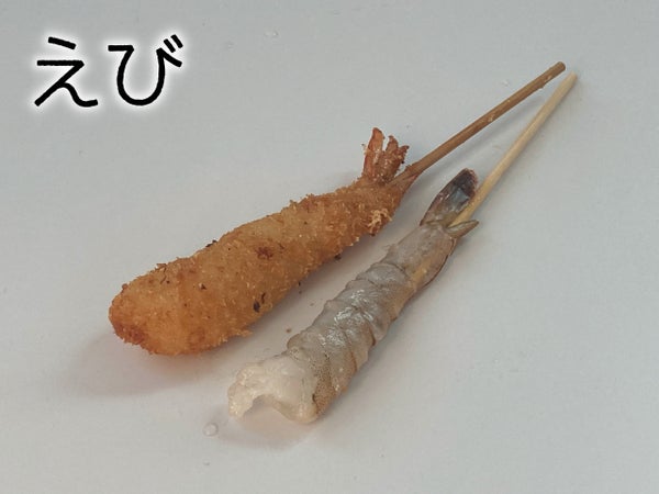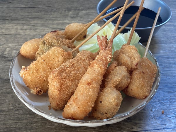 細かいパン粉と素材のサイズが串カツらしいバランスです。