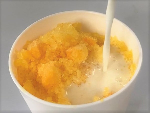 個食パックで便利。マンゴー果肉入りかき氷が提供できます。