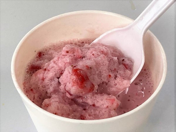 個食パックで便利。いちご果肉入りかき氷が提供できます。