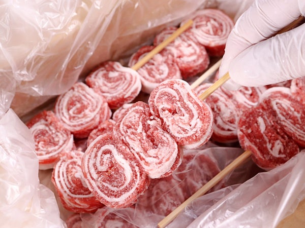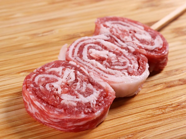 国産和牛のスライスを巻いて串打ちして切り分けた、お店で仕込むのが難しい串焼き素材です。