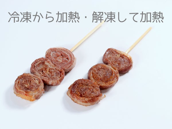 解凍してから焼くことで、やわらかくジューシーに焼きあがります。ただし型崩れしないように注意してください。冷凍のままから焼くと少し締まった固めの食感になります。