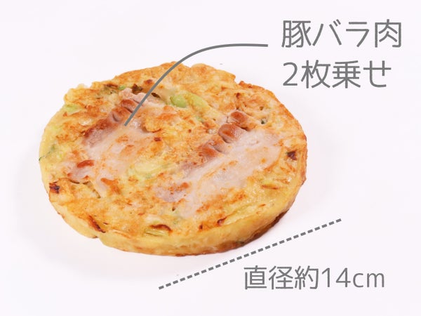 野菜[キャベツ(国産)、ねぎ]、小麦粉、豚肉(デンマーク)、鶏卵、揚げ玉、生姜酢漬、鰹節エキス、かつお節粉、食塩、植物油、調味料(アミノ酸等)、膨脹剤、酸味料、(原材料の一部にさば、ゼラチン、大豆、魚介類を含む)