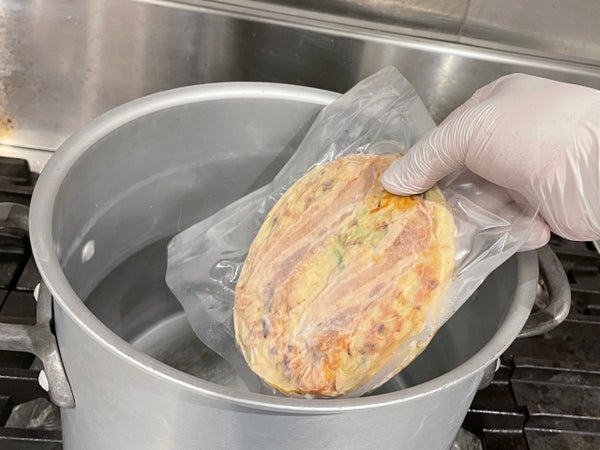 真空パックなので湯せん加熱もできます。同時にまとめて温める時には便利な方法です。