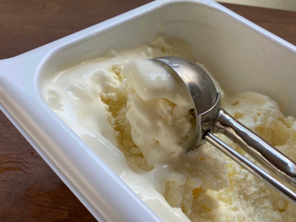 その名の通り、冷凍庫から出してすぐでも簡単にスクープできるアイスです。 やわらかいからといって、溶けているわけでも溶けやすいわけでもありません。 空気の含ませ方や、低温で固くなりにくいように成分調整をしてあるのです。
