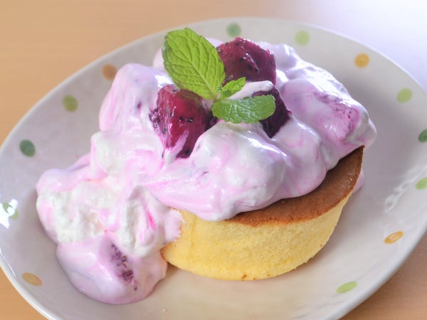 ホイップに混ぜ込んで「ピタヤレッドのパンケーキ」
