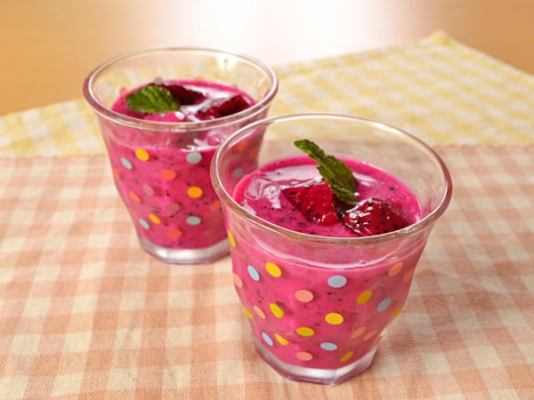 バナナなどのフルーツと一緒に「レッドドラゴンスムージー」