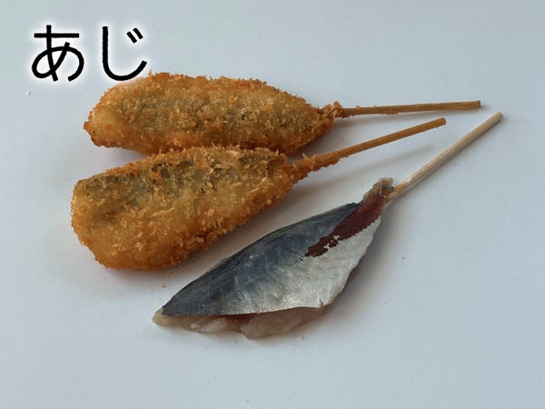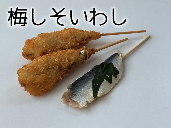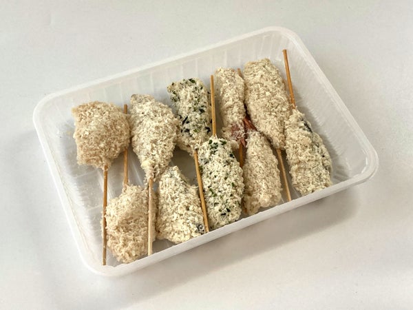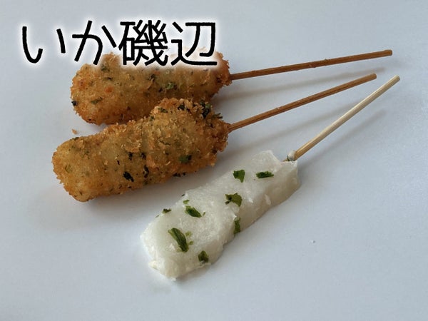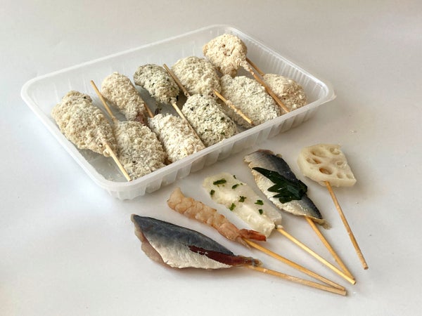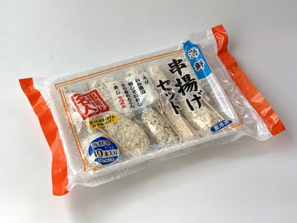 【いか磯部串】イカ(ペルー産)、衣(パン粉、小麦粉、でん粉、青のり、食塩)/調味料(アミノ酸)、増粘剤(グァーガム)、グリセリン脂肪酸エステル、(一部に小麦・大豆・いかを含む)【あじ串】アジ(中国産)、衣(パン粉、小麦粉、でん粉、食塩)/調味料(アミノ酸)、増粘剤(グァーガム)、グリセリン脂肪酸エステル、(一部に小麦・大豆を含む)【えび串】エビ(パキスタン産)、衣(パン粉、小麦粉、でん粉、食塩)/調味料(アミノ酸)、増粘剤(グァーガム)、グリセリン脂肪酸エステル、(一部に小麦・えび・大豆を含む)【いわし梅しそ串】イワシ(中国産)、しそ(中国産)、梅肉、衣(パン粉、小麦粉、でん粉、食塩)/調味料(アミノ酸)、増粘剤(グァーガム)、グリセリン脂肪酸エステル、(一部に小麦・大豆を含む)【れんこん海鮮すり身串】れんこん(中国産)、エビ、イカ、でん粉、たまねぎ、衣(パン粉、小麦粉、でん粉、食塩)/調味料(アミノ酸)、増粘剤(グァーガム)、グリセリン脂肪酸エステル、(一部に小麦・えび・大豆・いかを含む)