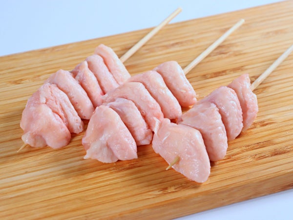 国産鶏肉のぼんちりを15cm串で4~6個刺しています。(定数ではないので前後する場合があります)
