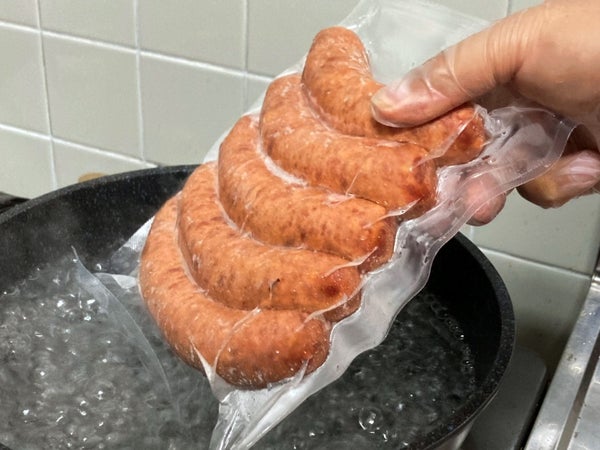 パックごと湯せんできます。その後フライパンで焼くといっそうおいしく仕上がります。