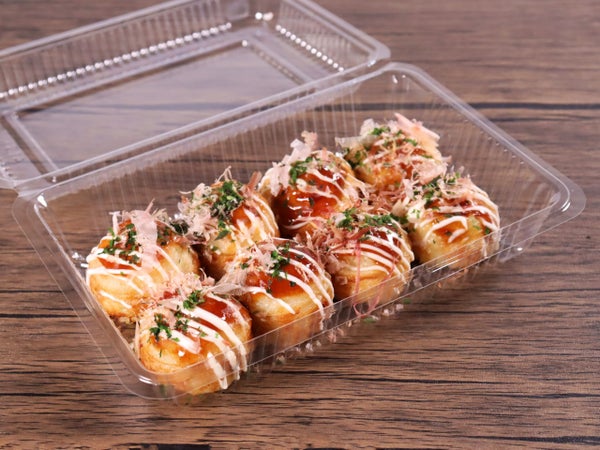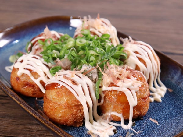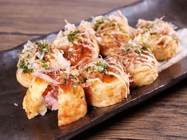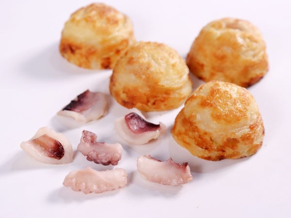 プリッとしたタコを使用し、キャベツ、紅しょうが、揚げ玉等を加えてバランスよく仕上げました。転がりにくい「つり鐘型」です。
