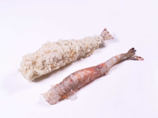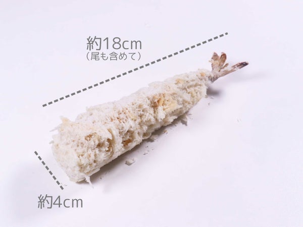 実は2尾のえびを使用しているのです。筋切りしたフライ用の伸ばしえびに、さらに開きえびを巻き付けています。