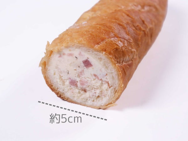 直径は中央部で約5cm程度。ベーコンとオニオンを細かく刻み込んだチーズが詰められています。