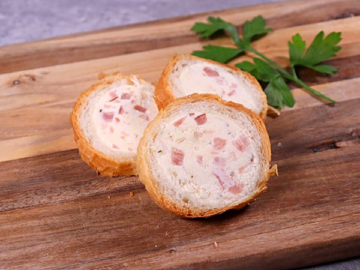 ベーコンとオニオン入りのチーズをバゲットに「詰めた」洋風おつまみ