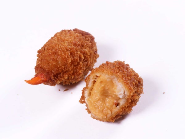 オマール海老の爪とオマール海老味噌入りのクリームソースで、豪華なクリームコロッケに仕上げました。