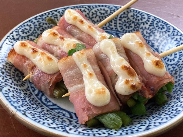 「アスパラベーコン串のチーズ焼き」